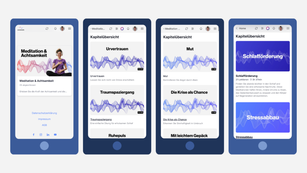 Im sonamedic Onlinekurs zur Stressprävention stärkst du in 12 aufeinander aufbauenden Video-Kursmodulen deine mentale Widerstandskraft. Mit Achtsamkeit, Meditation und psychologischem Know-how gelangst du zu einem selbstbewussten Umgang mit Stress.