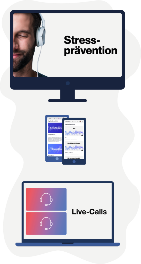 Zusätzlich zum Kurs erhalten Sie für 12 Monate Zugang zu unseren Audio-Inhalten – gezielte Entspannungs- und Achtsamkeitsübungen, die Ihnen helfen, Ruhe und Fokus zu bewahren. Egal, ob Sie besser schlafen, Stress reduzieren oder sich einfach wieder zentrieren möchten – die kurzen Übungen sind Ihr täglicher Begleiter für mentale Erholung und mehr Klarheit im Alltag.